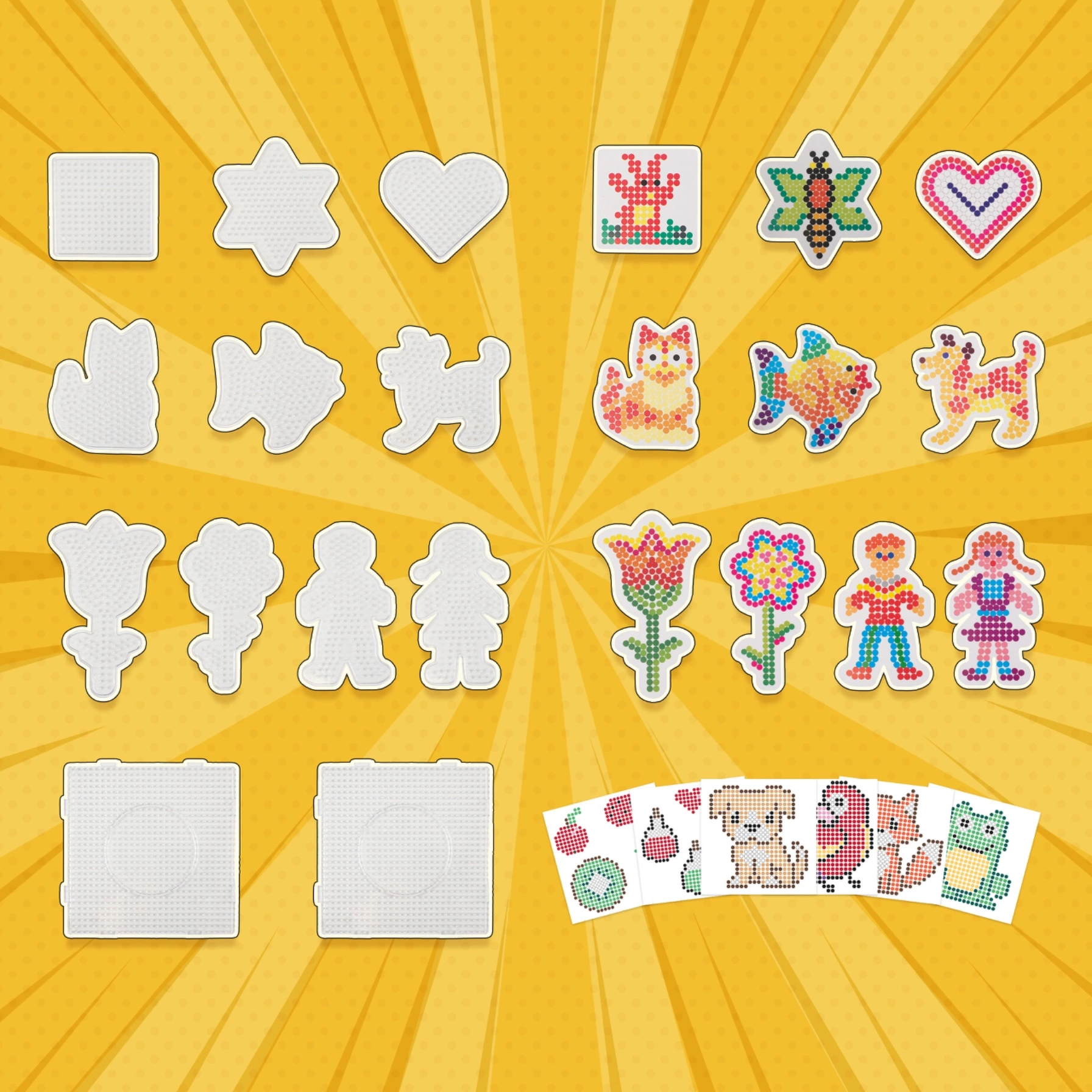 Ten zestaw został stworzony z myślą o dzieciach, które uwielbiają tworzyć coś własnymi rękami. Koraliki można łatwo układać na specjalnych podkładkach, a następnie utrwalać za pomocą żelazka i papieru do prasowania.