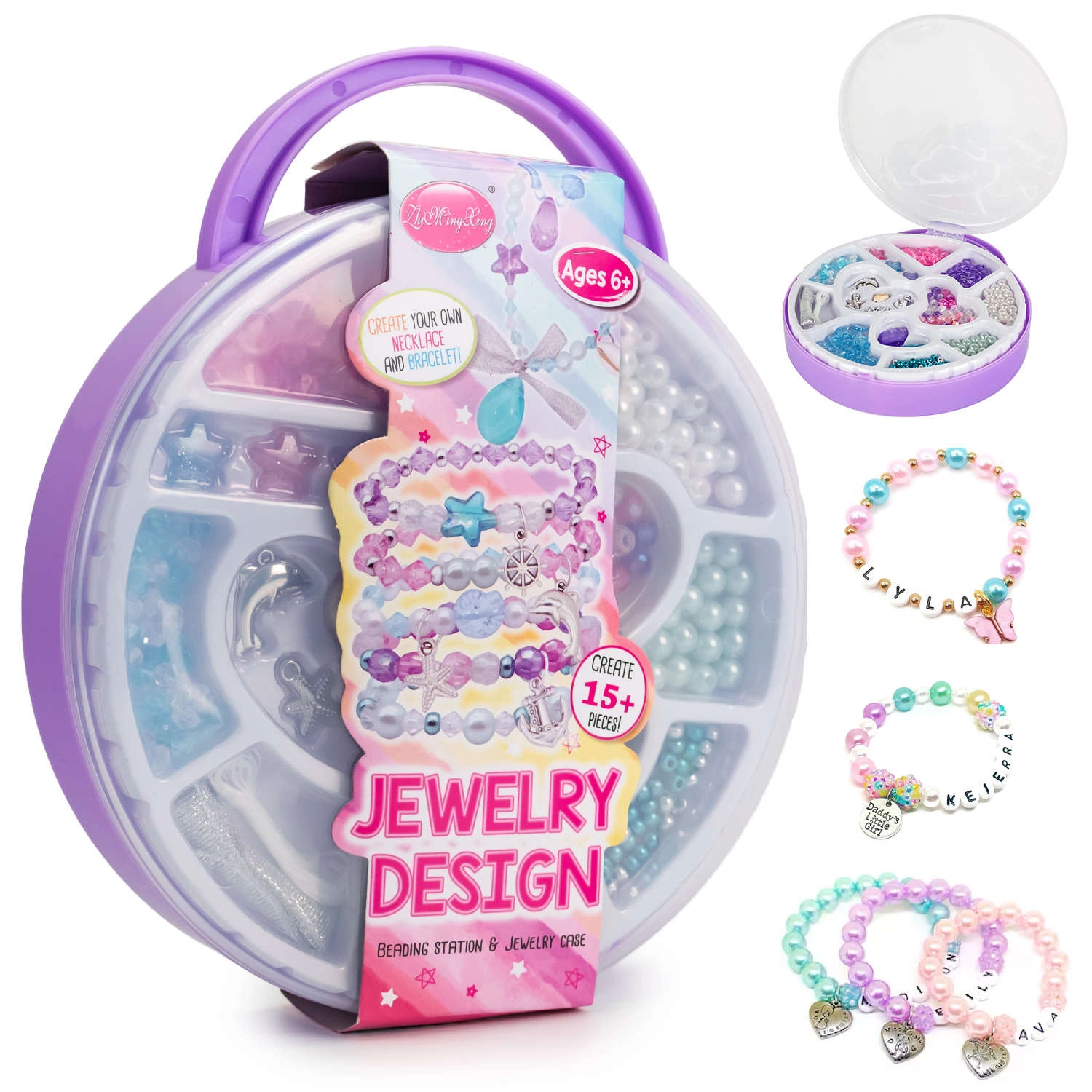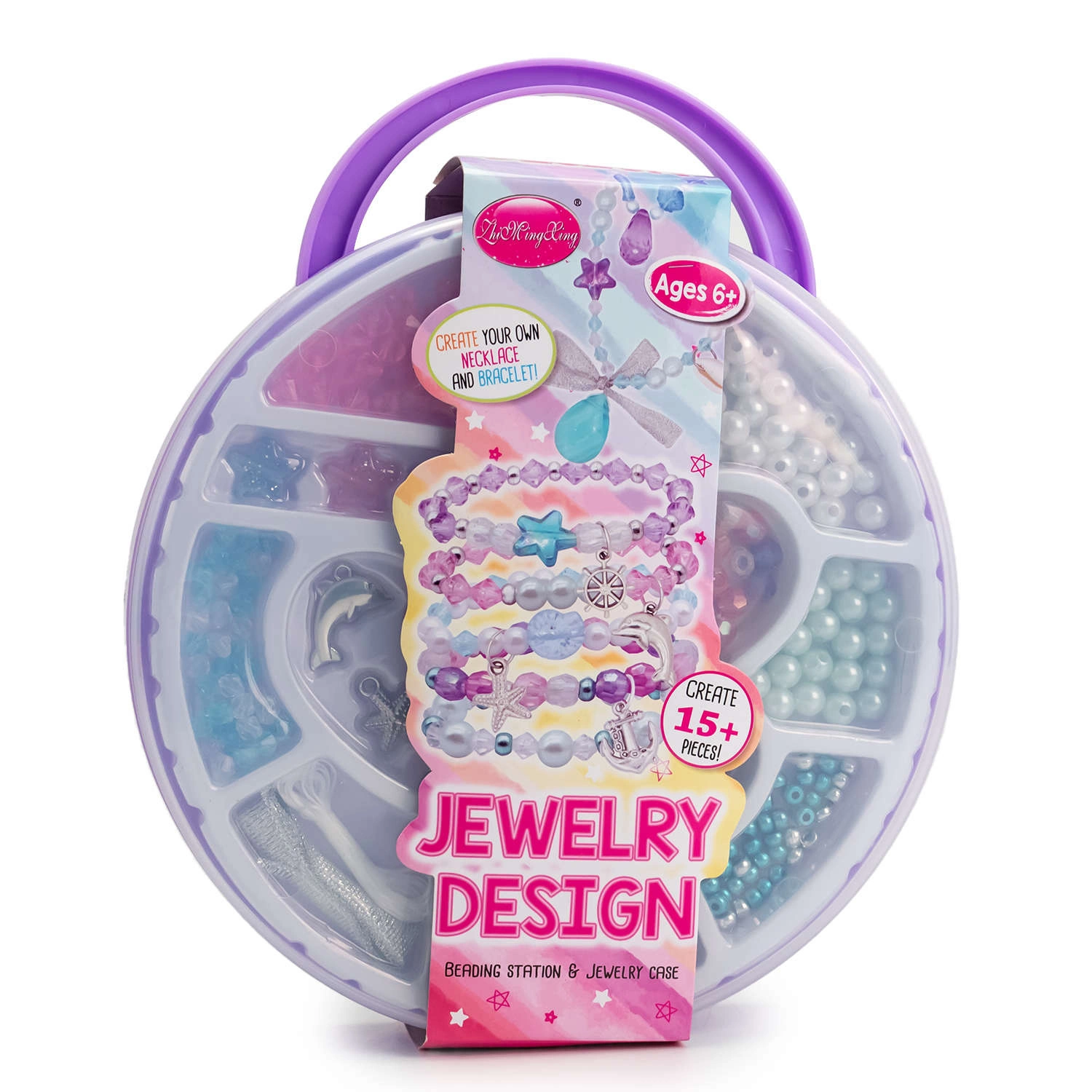 - Zestaw do kreatywnej zabawy i tworzenia personalizowanych biżuterii. Zapakowany w zamykane przenośne opakowanie w formie walizki.