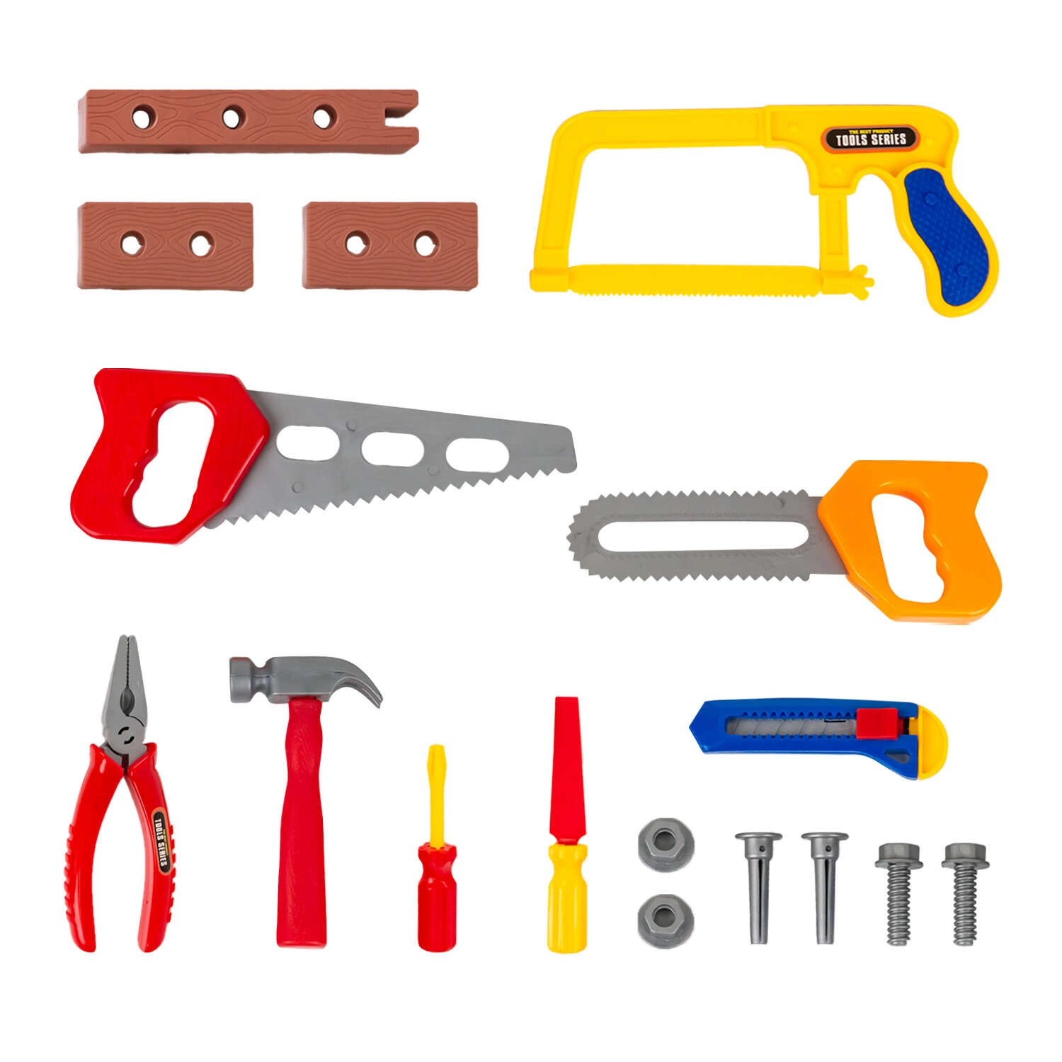 Ten kolorowy i atrakcyjny wózek warsztatowy to idealne narzędzie dla każdego dziecka, które marzy o tym, by naśladować swoich rodziców i nauczyć się podstaw majsterkowania. W zestawie znajdują się 24 elementy, w tym młotek, klucze, piła, śrubokręty i wiele innych, które są odwzorowaniem prawdziwych narzędzi.