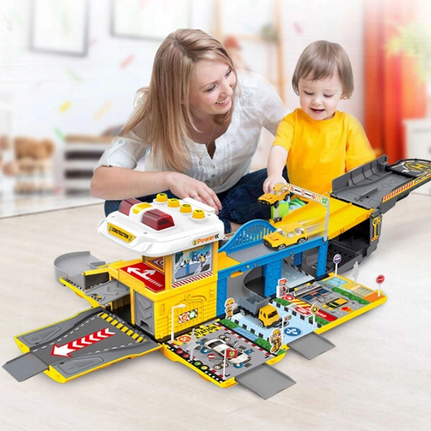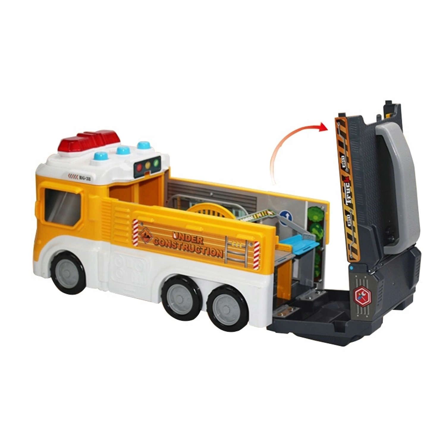 - Pełen frajdy: Szukasz naprawdę ładnego składanego wozu konstrukcyjnego, którym Twój mały chłopiec może bawić się małymi samochodami? Zabawkowy wóz konstrukcyjny przekształca się w miejsce zabaw z podwójną zjeżdżalnią do zabawy małymi samochodami.